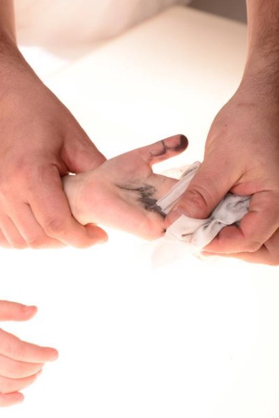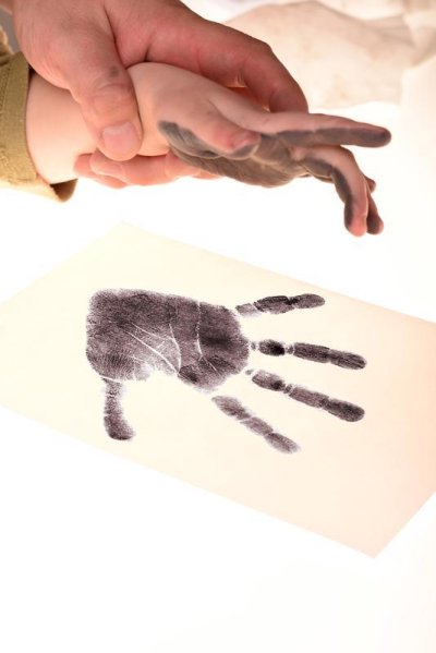 speciální barva s aplikátorem na otisky dětských ručiček a nožiček do deníčků, památníčků atd.