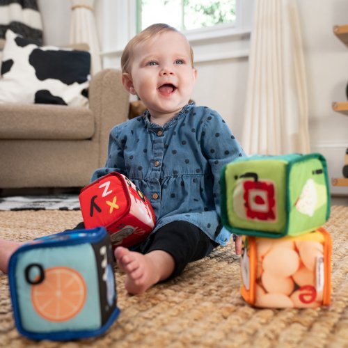 Objevování abecedy a smyslového vnímání ještě nikdy nebylo tak zábavné! Měkké kostky jsou navrženy pro malé rukojeti, které chtějí stavět, házet, mačkat - jednoduše objevovat. Každá ze 4 kostek je plná barev, zvuků a různých textur, které podporují rozvoj jemné motoriky a principu „příčina a následek“ .