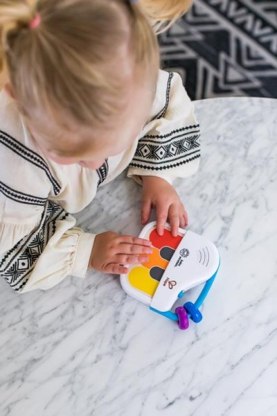 Nechte miminko objevovat kouzlo hudby pomocí Magic Touch Mini Piano od Baby Einstein. Toto mini piano je vybaveno stejnou technologií Magic Touch jako větší verze. S jemným dotykem malých prstíků se spustí největší hudební koncert. Klavír Magic Touch je ideálním způsobem, jak zavést děťátko do světa hudby. Inovativní dřevěné klavírní klávesy nefungují klasickým způsobem, ale s dotekem teplých prstů samotných. Piano umožňuje dětem 2 režimy hry, a to vytvořit si vlastní písně nebo spustit sérii klasických melodií. Tato přenosná hračka, která je malá, ale mocná, podporuje rozvoj jemných motorických schopností, když dítě praktikuje kroucení barevných kroužků.