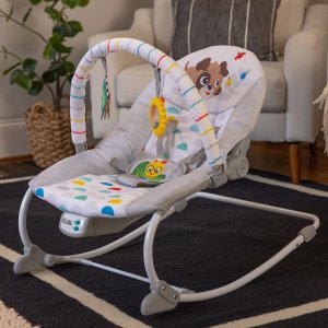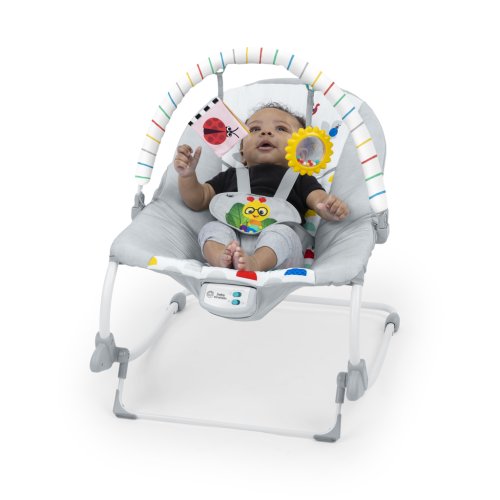 Jedno lehátko, dva způsoby jak uklidnit a zabavit miminko od narození až do období batolete! Lehátko Dean's Discovery Spot Musical Infant je ideální pro uklidnění a zábavu dítěte, zatímco si rodiče mohou na chvíli odpočinout. Navrženo v USA výrobcem č. 1 v kategorii lehátek. Umožňuje dítěti oddychovat, poslouchat hudbu a objevovat smysly v sedě nebo při houpacím pohybu. Zklidněte a pobavte miminko více než 20 minutami jemných vibrací a melodií. Lehátko můžete jemně houpat nebo zapojit stojan a změnit jej na stabilní sedátko. Hrazdička se dvěma visícími hračkami podporuje natahování a objevování: chrastítko ve tvaru slunce a šustící knížka. Jak dítě roste, můžete odebrat hrazdičku a deaktivovat stojan, čímž se sedátko promění v houpačku pro batole!