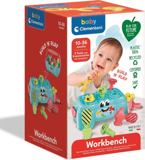 Výrobek patří do ekologického programu CLEMENTONI Play for Future , který byl vytvořen s cílem sdělit dětem důležitost udržitelnosti a ochrany životního prostředí. Rozměry dílny: 23 x 18 x 14 cm Délka nářadí: cca 10 cm