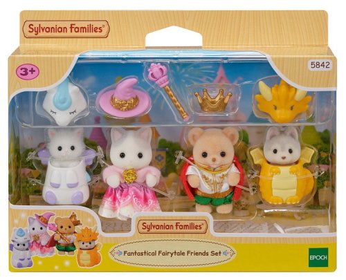 Seznamte se se čtveřicí přátel ze světa Sylvanian Families, převlečených do pohádkových kostýmů. Krásné a jedinečné kostýmy byly navrženy k oslavě 40. výročí Sylvanian Families! Malá Blair z rodiny perských koček se převlékla za bájného Pegase, Mabel z rodiny Latte koček má čarodějnický kostým, Noah holčička z rodiny sušenkových medvídků, si oblékla šaty pro prince a Drake z rodiny husky se hrdě představuje v dračím kostýmu. Hračky Sylvanian Families rozvíjejí představivost a povzbuzují děti k hraní rolí. Hra s figurkami rozvíjí kreativitu a učí emocím vytvářením a vyprávěním příběhů založených na každodenních zážitcích a pozorování světa. Vyznačují se nejvyšší kvalitou a výjimečným důrazem na detaily. Figurky Sylvanian Families jsou pokryté měkkým semišem, mají pohyblivé končetiny a hlavu. Oblečení lze z figurek sundat a vyměnit za jiný outfit. Baleno v krabičce. Rozměry balení: 13 x 16,5 x 4,5 cm. Věk: 3+