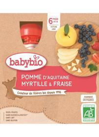 Ovocný bio příkrm od 6. měsíce ve čtyřech praktických 90g kapsičkách. Svěží lahodné receptury z bio ovoce zrajícího na lokálních francouzských ekofarmách. Bez umělých konzervantů, bez zahušťovadel a dochucovadel. Bez přidaného cukru. Bio výživa pro kojence od ukončeného 6. měsíce. Příkrm, se kterým zabodujete! Kombinace jablek, borůvek a jahod je skvělá a děti ji milují. Uvidíte sami. Vám se zase určitě bude líbit balení v praktických kapsičkách, které vám usnadní svačinu na cestách.