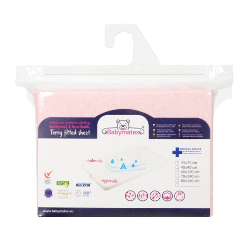 Po celém obvodu je všitá gumička, která zabraňuje shrnutí prostěradla. Rozměry: 60 cm x 120 cm x 10 cm Materiálové složení: Froté, 82% bavlna, spodní vrstva 100% PU Tento obal není hračka. Uchovávejte jej mimo dosah kojenců a malých dětí. Nepoužívejte obal například v dětských postýlkách, kočárcích atp. Tenká fólie by mohla uvíznout v nose nebo ústech dítěte a způsobit dýchací potíže nebo udušení. Nepoužívejte PU obal v blízkosti otevřeného ohně.