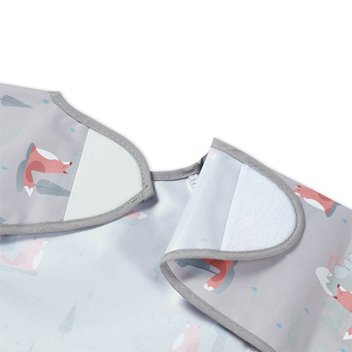 Bryndák s dlouhým rukávem je chytrý pomocník, který ochrání oblečení Vašeho miminka. Během jídla zajišťuje přední část oblečení i rukávy, které se obvykle ušpiní. Díky pružným gumičkám dobře přilne k malým ručičkám miminka. Bryndák s rukávy má také praktickou kapsu na drobky, která zachycuje zbytky jídla. Zástěra s rukávy je voděodolná a snadno se čistí, takže se osvědčí, když se děťátko učí jíst samo. Zapínání bryndáku můžete libovolně přizpůsobit velikosti krku miminka.
