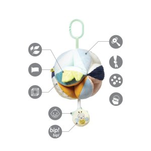 Edukační hračka míč Woodland z kolekce Play More Collection zavede vaše děťátko do rozmanitého světa barev, zvuků a tvarů. Díky C kroužku jej zavěsíte na jakýkoli typ postýlky, autosedačky nebo kočárku, čímž může doprovázet vaše děťátko při cestování a procházkách. Myšlenkou této kolekce na hraní je podnítit dětskou zvědavost a povzbudit je, aby se učili prostřednictvím hry.Umožňuje dítěti získat nové dovednosti, kde rozvíjí motorické a kognitivní dovednosti.Hračka zabaví děťátko velkým množstvím aktivit.Zvuk pískání vzbudí zájem a ukazuje vztahy příčiny a následku. které je součástí hračky, zklidňuje podrážděné dásně během prořezávání zoubků.Šustící prvky umístěné v hračce dítě zaujmou a upoutají jeho pozornost.Barevné, vyčnívající stužky a zajímavé uzlíky stimulují hmat dítěte.Chrkající zvuk působí na dítě učení se chytat a uchopovat základní tvary. bena z kvalitních materiálů s důrazem na každý detail Hračka splňuje bezpečnostní normy platné v Evropské unii -multi edukační hračka -tvar míče trénuje motoriku při uchopování základních tvarů -zvuk pískání, chrastění, kousátko -různé textury, uzlíky a stužky -jednoduché připevnění díky C kroužku -složení 100% polyester -vhodné pro děti od narození Rozměry: 16x 16 x 26 cm