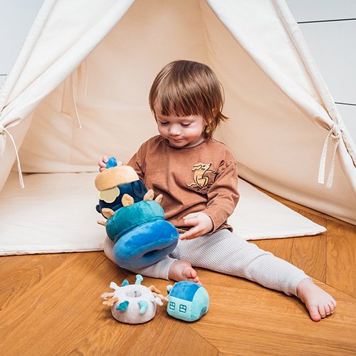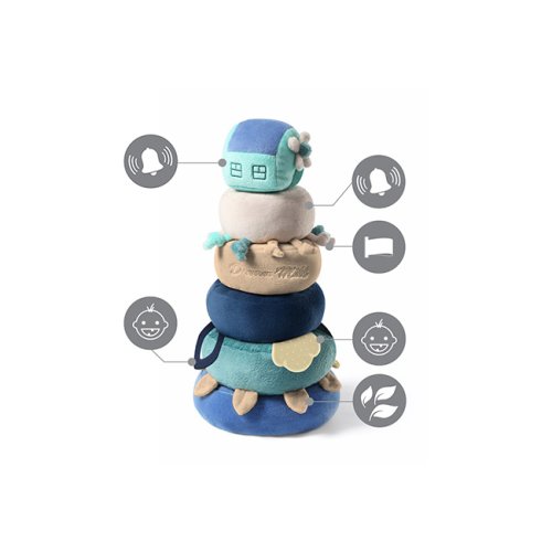 Vzdělávací hračka Dream Mill seznamuje miminko s rozmanitým světem barev, zvuků a tvarů. Díky univerzálním otvorům a možnosti uspořádání prvků do tvaru věže lze stimulovat jeho kreativní myšlení.