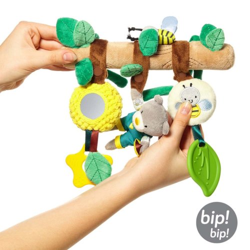 Hračka poskytuje děťátku pocit bezpečí a podporuje emocionální rozvoj prostřednictvím prvků reagujících na interakci. Skládá z několika částí - prvků, které lze přemísťovat a oddělovat. To umožňuje děťátku učit se prostorovému myšlení. Měkké silikonové kousátka, které jsou součástí hračky, zklidňují podrážděné dásně během toho, jak rostou první zoubky. Pískací zvuk hračky vzbuzuje zájem ukazující vztahy příčiny a následku. Šustící prvky ukryté v listu zaujmou děťátko a upoutají jeho pozornost. Bezpečné zrcátko umožňuje děťátku seznámit se s vlastním obrazem. Jemné smyčky a velký počet vyčnívajících prvoků stimulují smysl děťátka pro hmat.