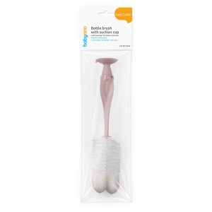 BABYONO Kartáč na lahve a savičky s přísavkou Pink