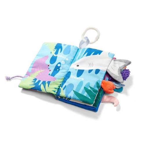 Tato kniha byla vytvořena s ohledem na smyslový vývoj dítěte. Zajímavě ukazuje podmořský svět. Díky stuhám vyčnívajícím za okraj knihy umožňuje dítěti studovat různé materiálové textury. Kniha umožňuje dítěti naučit se nové dovednosti, od procvičování úchopu až po získání zajímavých zvukových a vizuálních dojmů. Bude doprovázet dítě v prvních fázích vývoje a reagovat na nové kognitivní potřeby. Kniha je certifikovaná Oeko-Tex Standard 100.