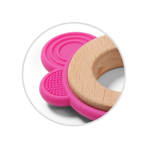Dřevěná a silikonová kousátka plní nejen svoji základní roli, tedy ulevuje při prořezávání zoubků, ale díky kombinaci bezpečného silikonu a bukového dřeva zajišťuje děťátku i různorodou smyslovou stimulaci. Výstupky na povrchu kousátka senzoricky stimulují, pomáhají při uchopení a umožňují aplikovat na dásně speciální gel na prořezávání zoubků.