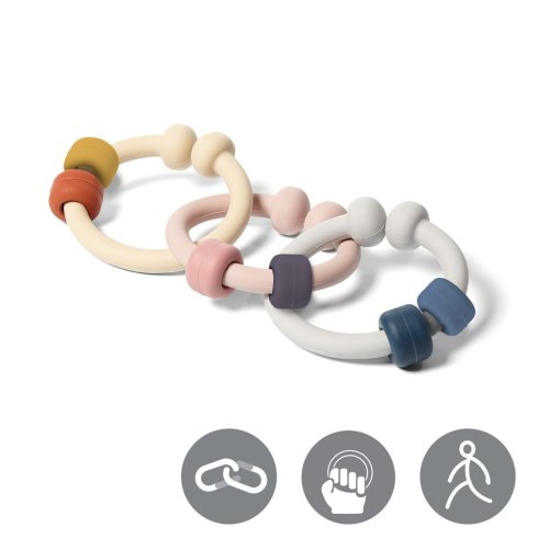 Hračka se skládá ze 3 samostatných částí, které lze navzájem spojovat a přesouvat. Tato činnost stimuluje mozek dítěte a rozvíjí jeho kognitivní schopnosti. Jednotlivé části hračky lze snadno spojovat do řetězu, vzbuzují zájem děťátka, soustřeďují jeho pozornost a učí jej prostorovému myšlení.