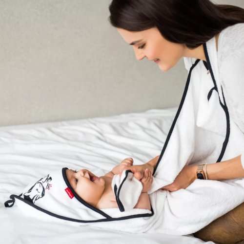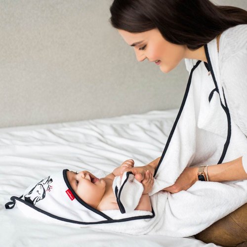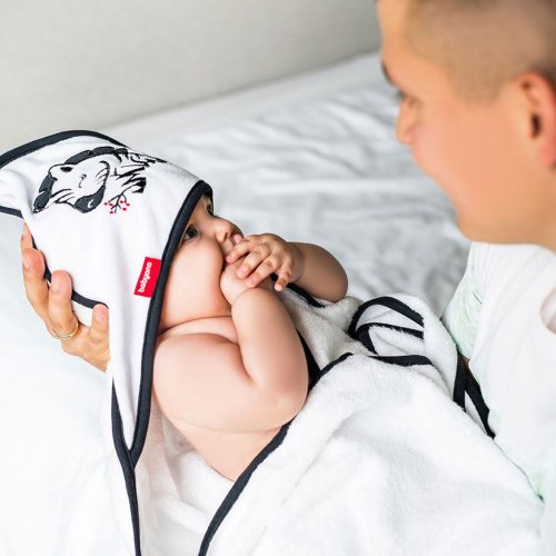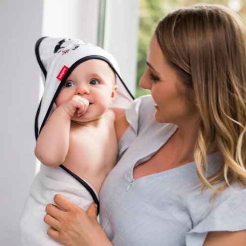 Osuška na koupání BAMBOO s kapucí je při prvním koupání nenahraditelná. Je vyrobena z kvalitního jemného bambusu s příměsí nadýchané bavlny. Potah perfektně absorbuje vlhkost a poskytuje jemné pokožce dítěte účinnou ochranu před vnější teplotou. Díky svým termoregulačním vlastnostem dodává v létě pocit chladu a v zimě hřeje. Bambusový potah splňuje očekávání nejnáročnějších rodičů, kteří chtějí dítěti poskytnout při koupání nejvyšší komfort. Je to velmi dobrá volba pro děti s kožními problémy, protože bambusové rouno je hypoalergenní. Pro pohodlí dítěte je kapuce na spodní části podšitá další vrstvou materiálu. Potah má navíc všitou aplikaci se zvířátky. Je zabalen v průhledném sáčku zapínání na druky.