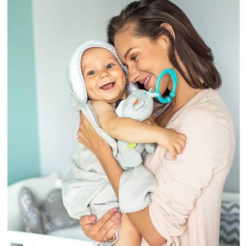 Dětská bambusová osuška s kapucí BabyOno. Bambusové vlákna vytvářejí extrémně měkký a jemný povrch. Bambus je jednou z nejcennějších rostlin, které jsou známé svými zdravými a zklidňujícími vlastnostmi a na jeho pěstování se nepoužívají pesticidy. Bambus má antibakteriální vlastnosti, takže je odolný vůči pachu. Osuška dokonale absorbuje vlhkost (o 60% více než bavlna). Osuška je zdobena obrázkem zvířátka, má barevné lemování, kapuci, která chrání mokrou hlavičku miminka před chladem a našité poutko na zavěšení. Velmi dobře a rychle schne. Složení: 60% viskóza (bambusová viskóza), 30% bavlna. Rozměry: 76x76 cm.