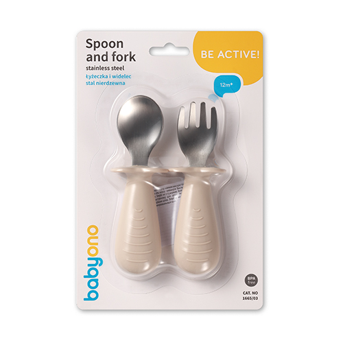Dětský příbor se zábranou – bezpečný, ergonomický a ideální pro první samostatné krmení. Chcete, aby se vaše děťátko učilo používat lžičku a vidličku samostatně? Tento bezpečný příborový set je ideální pro osvojení si prvních dovedností při jídle. Lžička a vidlička jsou vyrobeny z kvalitní nerezavějící oceli, rukojeti z protiskluzového silikonu bez BPA. Speciální zábrana brání tomu, aby si dítě zasunulo příbor příliš hluboko do úst – minimalizuje tak riziko dušení či zvracení. Díky ergonomickému tvaru a zaobleným hranám je používání příboru pro dítě jednoduché, pohodlné a bezpečné.