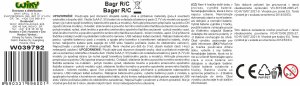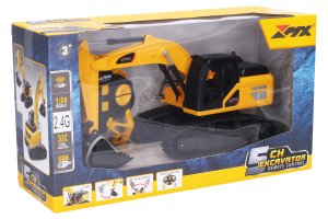 Bagr RC na dálkové ovládání. Rozměry 26x9,2x13 cm. Frekvence 40MHz. Manuální otáčení základnou. Dosah 15 m. Tlačítka na ovladači - zvedání a pokládání nabíracího ramene. Světelné efekty. 3.7V 500mAh bateriový pack do bagru součástí, 2xAA do ovladače nejsou součástí. USB kabel součástí. Přepínač ON/OFF na spodní straně bagru.