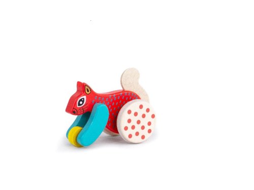 Kdo to je?Při zatlačení skáče a napodobuje skutečné zvíře. Má plstěný ocas a v rukou drží symbolický oříšek. Dřevěná poskakující veverka má speciální mechanismus, který uvádí hračku do pohybu. Takový odkaz na realitu působí na představivost dítěte. Dítě se učí, jak se tato zvířata pohybují. Poznává jejich svět a díky tomu si jich začíná všímat a oceňovat je. Hračka také přispívá k rozvoji hrubé motoriky, zahrnuje pohyby rukou a těla. Jedinečnost dřevěných hraček spočívá v tom, že jsou naprosto bezpečné pro zdraví dítěte. Společnost Bajo nabízí mnoho hraček lakovaných barvami, proto je jejich prioritou kvalita a zdravotní nezávadnost, která je potvrzena certifikáty. Kontrolovány a testovány jsou také prvky vyrobeny z plastu a kovu. Tato hračka a obal jsou vyrobeny z přírodních zdrojů a lze je snadno recyklovat. Doporučujeme povrch hračky čistit pouze vlhkým hadříkem. Nevystavujte prosím tuto hračku vysokým teplotám nebo vysoké vlhkosti, dřevo se za těchto podmínek může ohýbat a deformovat. Splňuje všechny evropské bezpečnostní normy. Hlavní vlastnosti: rozvíjí motorické dovednosti a stimuluje představivost a kreativitusnadno uchopitelné