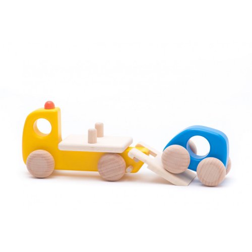 Kdo odveze nabourané autíčko? Tato silniční asistence! Jak se rozbité auto dostane na odtahovku? Je to snadné. Po plošině, která je doplňkovým prvkem odtahového vozu. Dá se upevnit a zase sundat. Jízda asistenční služby proto probíhá bez dalšího poškození, protože vůz je upevněn speciálními držáky. Najeďte autem mezi vyčnívající tyče, upevněte zadní část odtahovky, která slouží i jako nájezdová plošina a autíčko pak v žádném případě nevypadne. Hra s autíčkem rozvíjí hrubou i drobnou motoriku. Každý pohyb hračky - tlačení, válení, jízda po křivkách nábytku - je zároveň objevováním prostoru a dynamiky skryté v těle. Splňuje všechny aktuální evropské bezpečnostní normy. Hlavní vlastnosti: odtahovka s autíčkem a nájezdovou plošinourozvíjí motorické dovednosti