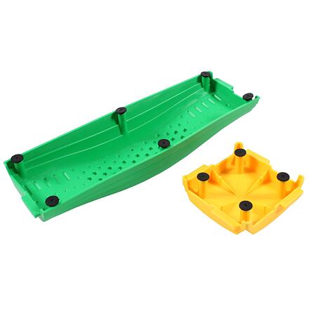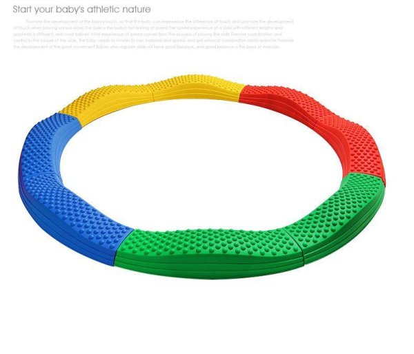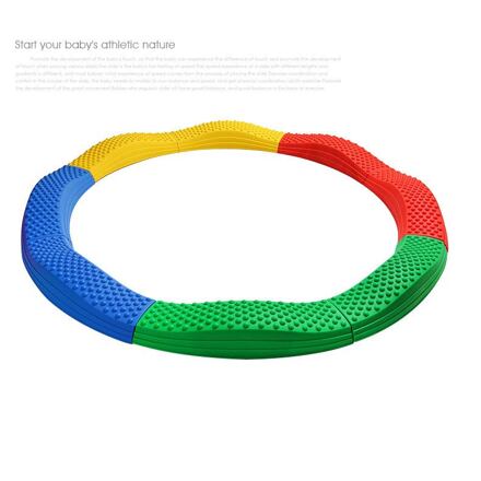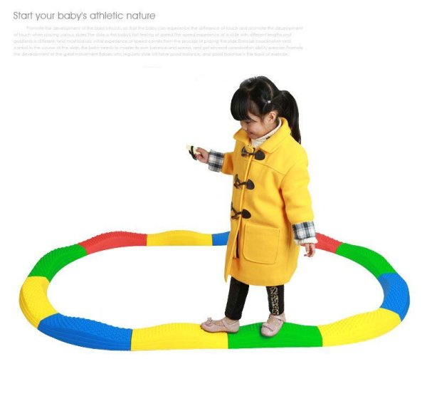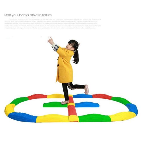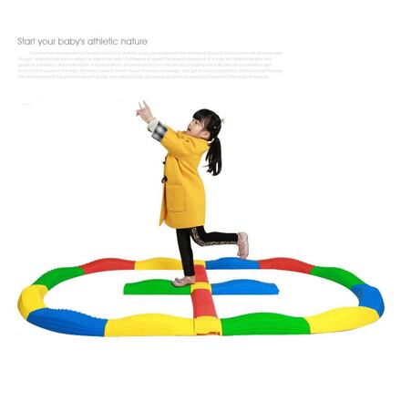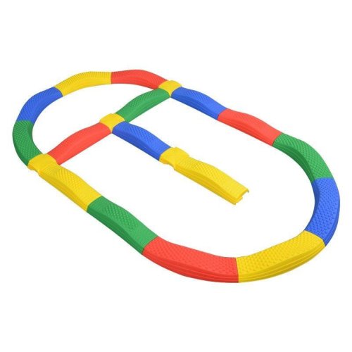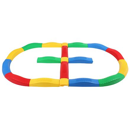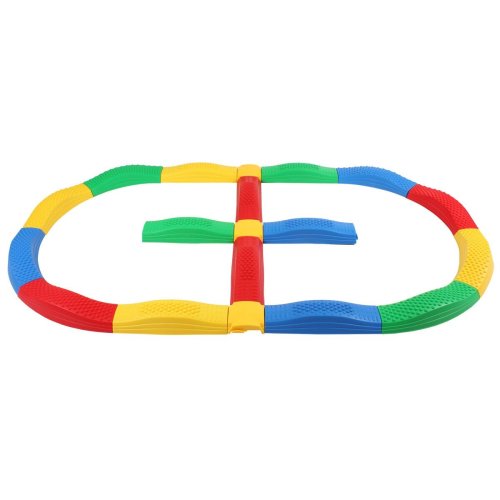 Tato variabilní motorická dráha Balance Bridge 884 je skvělou pomůckou pro nacvičení koordinace pohybu, rovnováhy a prostorové orientace. Nášlapná dráha je vhodný doplněk do mateřských a základních škol, mateřských center nebo dětských kroužků. Jednotlivé plastové díly sady jsou vlnité a mají na povrchu různou strukturu. Chůzí po dráze bez bot si děti mohou masírovat chodidla. Tvar dráhy také pozitivně ovlivňuje plosku nohy a správné držení klenby. Z dráhy mohou děti libovolně vytvářet chodníčky nebo překážkové dráhy (kruhové, had, přeskakovací,...). Pokud k dráze přidáte balanční kameny Balance Stepping Stones 11, můžete vytvořit ještě další varianty chodníků. Sada se skládá z celkem 20 dílů. Osm dílů rovných, osm dílů zahnutých (rozměry cca 42 x 13 cm) a čtyři spojovací díly (rozměry cca 13 x 13 cm). Dílky se k sobě připojují jednoduchým zacvaknutím "zámků". Součástí sady jsou také protiskluzové gumové terčíky, které se dají umístit zespodu každého dílu. Upozornění: Výrobek není vhodný pro děti do 3 let! Vždy používejte pod dohledem dospělé osoby. - sada: 8x zahnutý díl, 8x rovný díl, 4x spojovací díl - materiál: PE plast - délka jednoho dílu: cca 42 cm - maximální nosnost: 50 kg