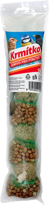 Směs krmiva KRMÍTKO vhodného k zavěšení. Umožňuje ptactvu pohodlnou konzumaci předložené potravy. Skládá se z oříšků, slunečnice, tuků, obilí a vloček. Balení: 8 ks.