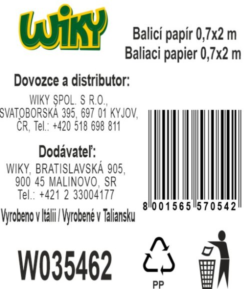 Tento produkt je balicí papír. Není určen ke konzumaci. Uchovávejte mimo dosah malých dětí, aby nedošlo k udušení v případě vdechnutí nebo spolknutí. Papír může být hořlavý, chraňte před otevřeným ohněm.