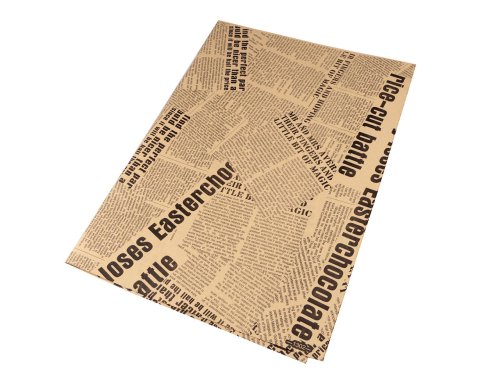 [Dekorační papír s novinovým potiskem] si zamilují příznivci vintage stylu. Potisk je oboustranný - obě strany mají stejnou barvu. Papír využijete k výrobě prostírání, kornoutů, k balení dárků i na scrapbooking, kde s ním můžete ozdobit pozvánky, přání, deníky, krabičky apod. [Floristé jej používají na ozdobné manžety uvázaných pugétů kytic.]