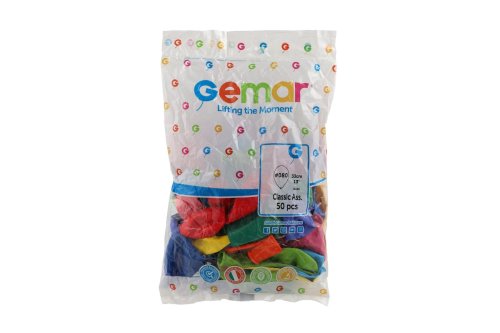 Kulaté nafukovací balónky G120 33cm / 13" Doba vznášení - 24-30 hodin Balónky jsou vhodné pro dekorace. Sáček po 50 ks Balóny Gemar jsou vyráběny výhradně v Itálii v souladu s národními a evropskými předpisy. Rozměry balení 22 x 33 x 4 cm.