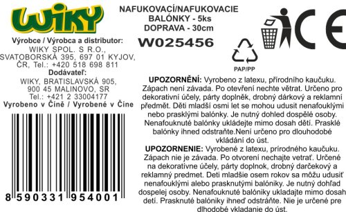 Balónek nafukovací 30 cm - sada 5ks, Doprava