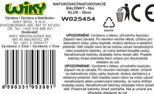 Balónek nafukovací 30 cm - sada 5ks, Kluk