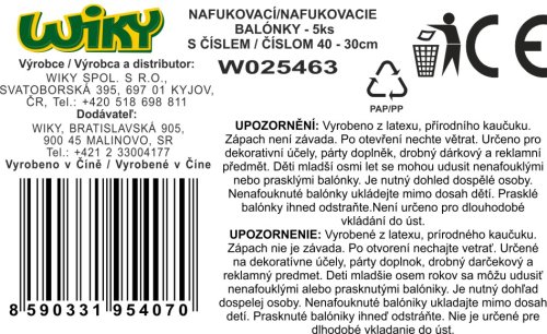 Balónek nafukovací 30 cm - sada 5ks, s číslem 40