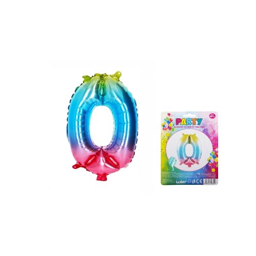 Duhový nafukovací balónek ve tvaru čísla 0 je vhodný jako doplněk na narozeninovou párty!