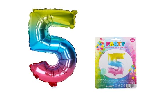 Duhový nafukovací balónek ve tvaru čísla 5 je vhodný jako doplněk na narozeninovou párty!