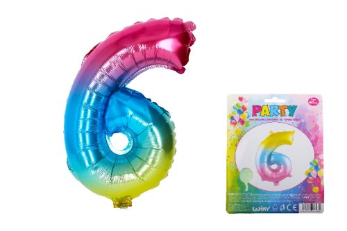 Duhový nafukovací balónek ve tvaru čísla 6 je vhodný jako doplněk na narozeninovou párty!