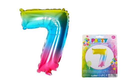 Duhový nafukovací balónek ve tvaru čísla 7 je vhodný jako doplněk na narozeninovou párty!