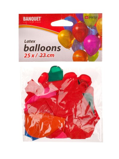 Sada latexových balonků pro Vaše oslavy a party. Sada obsahuje 25 ks kvalitních a zdravotně nezávadných balónků pestrých barev. Pro nafukování doporučujeme používat pumpičku, která je součástí sortimentu.