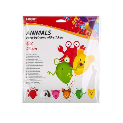 Sada latexových balonků MY PARTY Animals pro Vaše oslavy a party. Sada obsahuje 6 ks kvalitních a zdravotně nezávadných balónků pestrých barev a 6 sad obrázků, které umožňují vytvořit obrázek zvířátka. Sada obsahuje rovněž samolepicí štítky pro upevnění vystřihovánek na nafouknutý balónek. Pro nafukování doporučujeme používat pumpičku, která je rovněž součástí sortimentu.