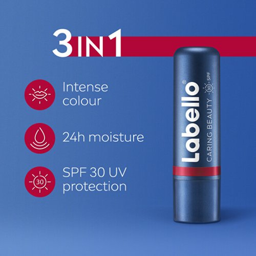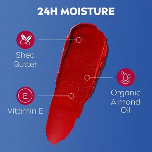 Barevný balzám na rty Red je multifunkční balzám 3 v 1, který kombinuje péči, barvu a ochranu před sluncem. Dodává rtům přirozený červený odstín, intenzivně hydratuje a zároveň je chrání před UV zářením díky SPF 30. Lze jej použít i jako krémovou tvářenku pro svěží vzhled.