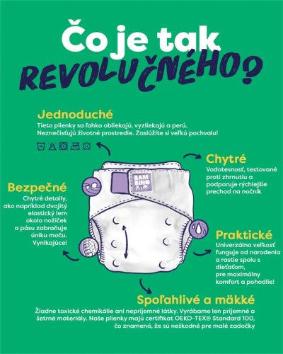 Revoluční látková plenka ALL-IN-ONE pro opakované použití hned od narození, je chytrým řešením "vše v jednom" pro úspory, pohodlí, komfort a výkon.