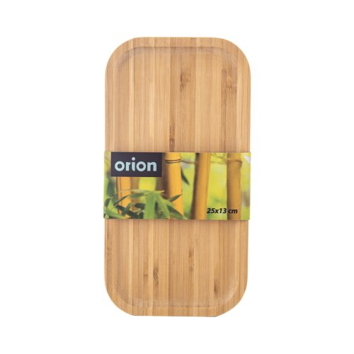 Bambusový podnos Orion - 25x 13 cm Servírovací tác se hodí k podávání jednohubek, chlebíčků, ale i koláčků nebo dezertů Materiál: bambusové dřevo Rozměry: 25x 13x 1,5 cm