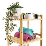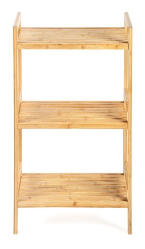 Bambusový regál se třemi policemi dodává interiéru příjemný přírodní dojem, pocit lehkosti a přirozenosti, zatímco jeho pevnost a dlouhá životnost zajišťují stabilitu a trvanlivost.