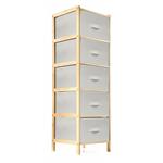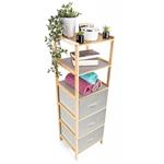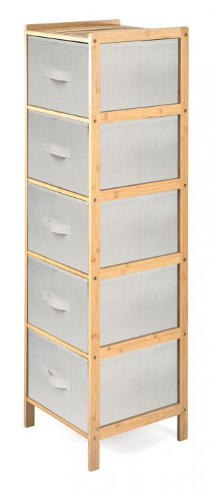 Praktický stojan s 5 výsuvnými textilními košíky ušetří spoustu místa a uložíte do něj vše, co potřebujete. Potřeby na praní nebo kosmetiku, oblečení i dětské hračky. Každý košík má objem 21 litrů, šířka je 33 cm, výška 19 cm a hloubka 35 cm. Celý stojan má na výšku 1,20 m.