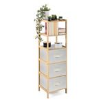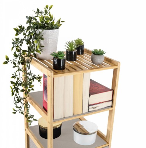 Bambusový regál s výsuvnými látkovými zásuvkami dodává interiéru příjemný přírodní dojem, pocit lehkosti a přirozenosti, zatímco jeho pevnost a dlouhá životnost zajišťují stabilitu a trvanlivost.