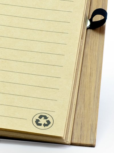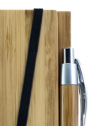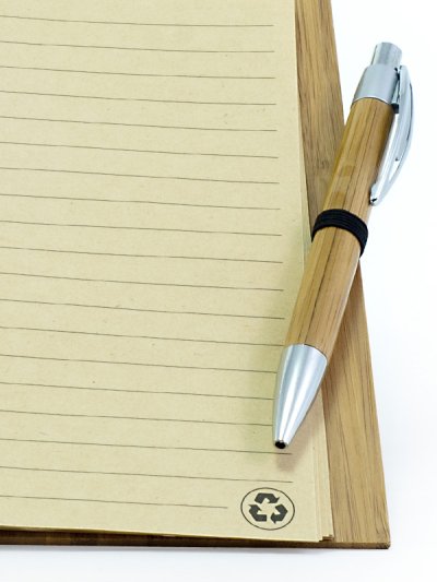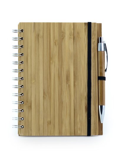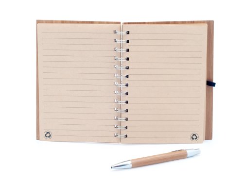Designový zápisník z bambusu s bambusovou propiskou, kroužková vazba. Linkované listy z recyklovaného papíru. Ekologický výrobek.