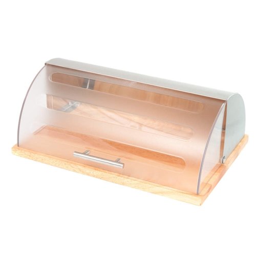 Chlebník GRANDE 39 cm slouží k uchovávání všech druhů pečiva. Je vyroben z nerezu v matovém provedení, víko plast, základna dřevěná - gumovníkové dřevo, výška 1,60 cm, typ nerezu: 18/0, síla nerezi 0,40 mm, rozměry: 39 x 28,5 x 15 cm.