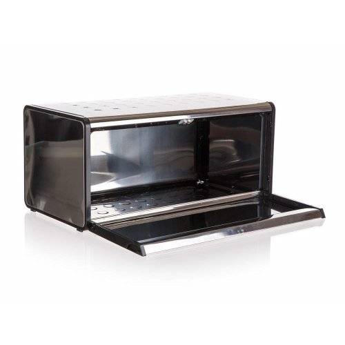 Nerezový chlebník QUADRA o rozměru 39,5 x 20,5 x 18 cm s černým lemem slouží k uchovávání všech druhů pečiva. Povrchová úprava: lesk, typ nerezové oceli: 430, síla nerezu 0,3 mm.