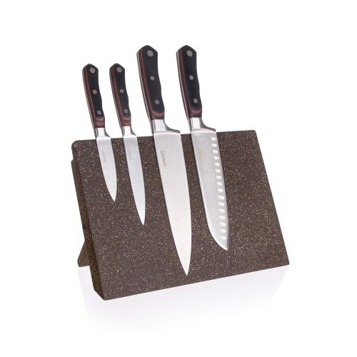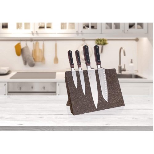 Magnetická deska na nože GRANITE BROWN o rozměrech 30 x 21,5 cm je praktický pomocník do každé kuchyně pro přehledné uspořádání nožů. Díky ní budete mít nože neustále po ruce. Povrch desky je z MDF v hnědé barvě s dekorem Granite Brown. Magnetická deska slouží jako stojánek a umožní vám bezpečný a snadný přístup k nožům. Pevné uchycení nožů zajišťuje silný magnet uvnitř desky.