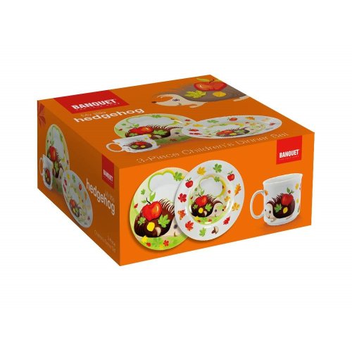 Dětský jídelní sada JEŽEK 3 ks zpestří jídlo našim nejmenším. Jídelní sada je vyrobená z kvalitní keramiky a je vhodná do jak do mikrovlnné trouby i do myčky na nádobí. Sada obsahuje: mělký talíř 20 cm, hluboký talíř 20 cm, hrnek 210 ml.