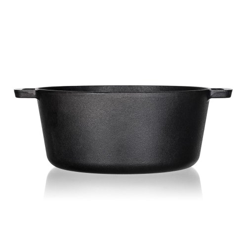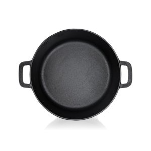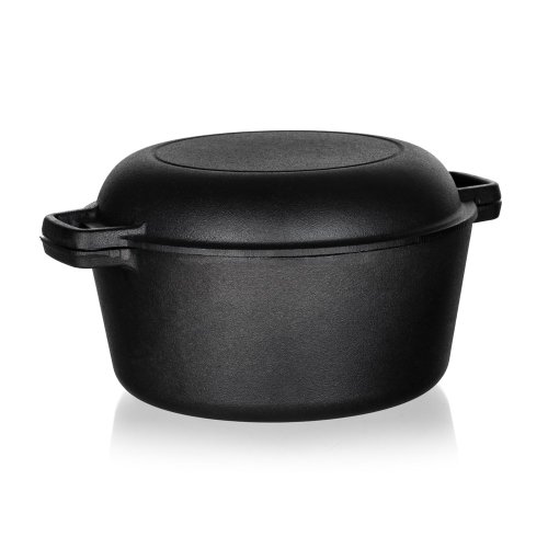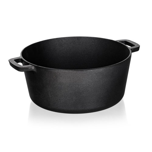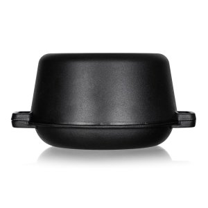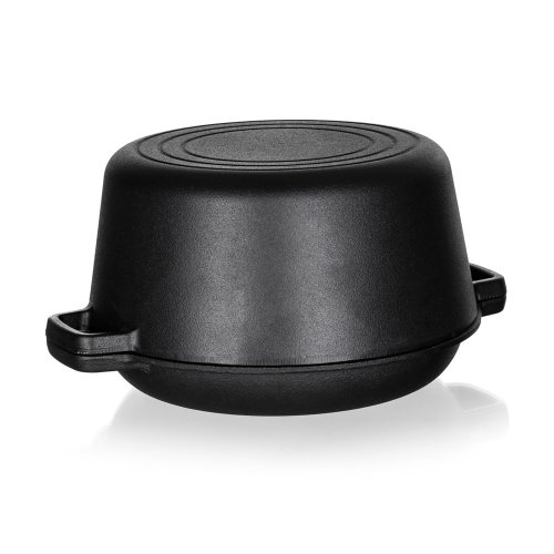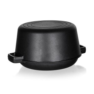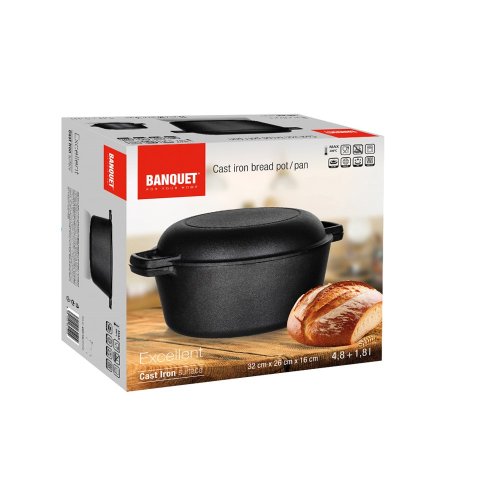 Hrnec litinový EXCELLENT na chleba, kulatý s víkem o objemu 4,8 l + víko 1,8 l o rozměru 32 x 26 x 16 cm v černé barvě. Litinový hrnec je ideální nejen pro pečení chleba. Litina zajistí rovnoměrné propečení čímž dodá chlebu nezaměnitelnou zlatou křupavou kůrku. Masivní materiál, který jakmile se nahřeje, vydrží dlouho a rovnoměrně rozvádí teplo, díky němuž se pokrm v litinovém pekáči upeče rovnoměrně, za kratší dobu a úsporněji. Před prvním použitím naneste na povrch pekáče rostlinný olej a postupně jej začněte ohřívat v troubě (začněte na mírném ohni a pomalu zvyšujte teplotu). Zapečením oleje získá výrobek svoji nepřilnavost. Litinový hrnec je ideálním pomocníkem ve vaší kuchyni. Můžete v něm péct jakékoliv pečivo, buchty, pizzu, ale i zapékat brambory, zeleninu apod. Nebo můžete víko použít samostatně jako pánev ke smažení, nebo jako pekáček pro zapékání vašich oblíbených pokrmů.