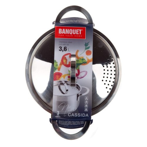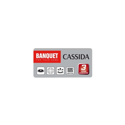 Nerezový hrnec CASSIDA New Line 3,6 l s poklicí, rozměry - průměr 20 cm, výška 11,5 cm, povrchová úprava v kombinaci lesk a mat, na vnitřní straně měrka objemu, děrovaná nerezová poklice pro snadné slévání tekutin, protektor pro indukci. Sendwichové dno.