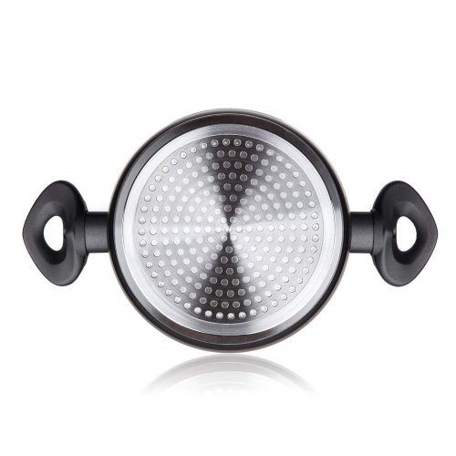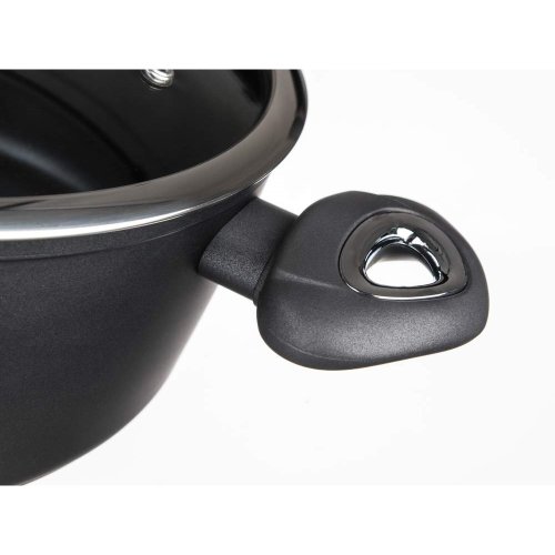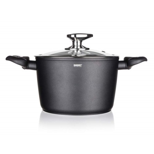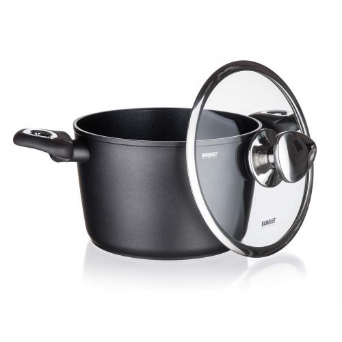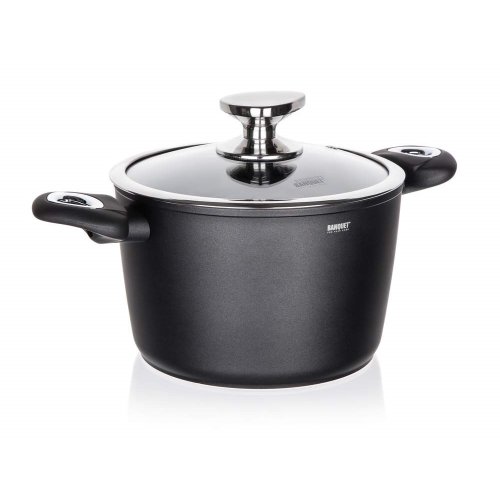 Kovaný vysoký hliníkový hrnec se skleněnou poklicí 20 x 13 cm MATTE DARK GREY je vyrobený z hliníkové slitiny kováním do formy, tl. materiálu 3 mm. Má vnitřní nepřilnavý 2vrstvý povrch odolný proti poškrábání, vnější žáruvzdorný nástřik, soft touch madla, nerezový knob a indukční dno. Hrnec lze použít pro všechny typy pokrmů od minutky po běžné vaření, hrnec vyníká dobrou tepelnou vodivostí, rozvádí rovnoměrně teplo při vaření.